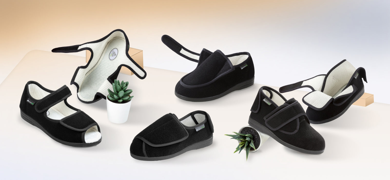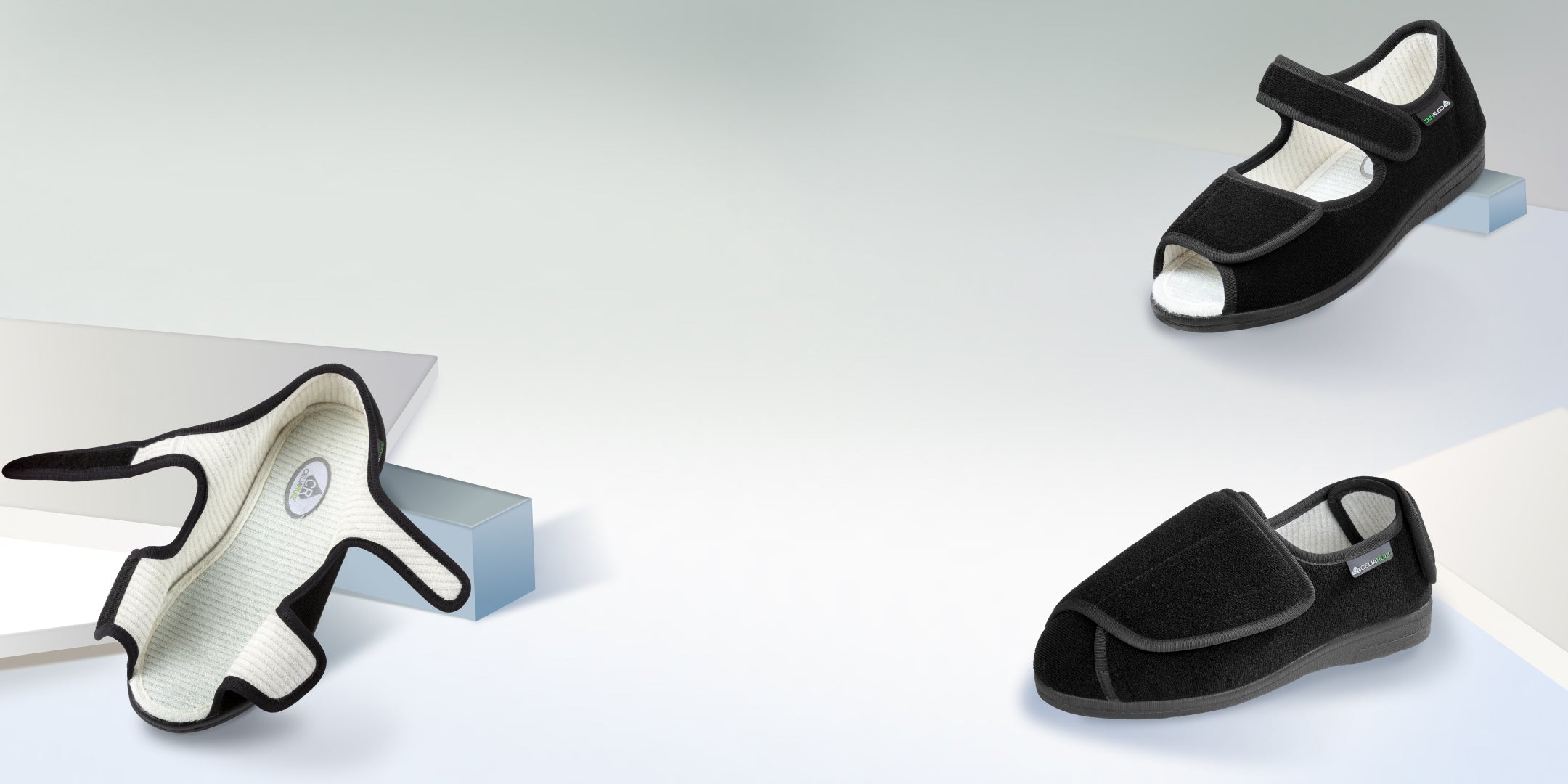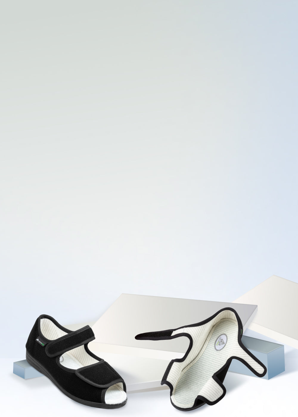 We have developed an innovative footwear collection, which combines functional footwear designs for various types of pathologies with construction materials. Combining COOLMAX® fibers with Carbon fibers gives our one of a kind shoes, the ability to create a dry, and airy environment while maintaining freshness. Celia Ruiz footwear is also fully adaptable to any size and width. The shoe opens completely to allow patient to easily enter and exit the shoe, while the unique Velcro strapping allows you to close the shoe at any width.